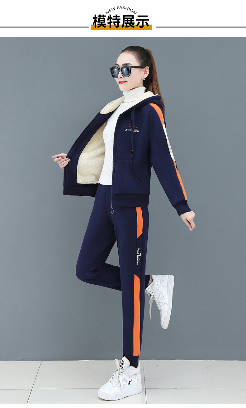 丹仙奴厚い加絨運動セット女性秋冬2020新款韓国版子羊の绒のファスナーのウェアーのカジュアルウェアの2点セットの黒(ダウンの2つのセットをプラスします)【ズボンの裾の入り口の金】2 XL【写真の価格のブランドのオファー】-