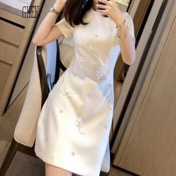 | 商品名称 | GHEKデザイン感ブランドの女装釘珠雪紡ワンピス女性は2021年夏に新商品のラウンドネック半袖スカート気質ファッションの短いスカートの米白色Sを持っています。 |