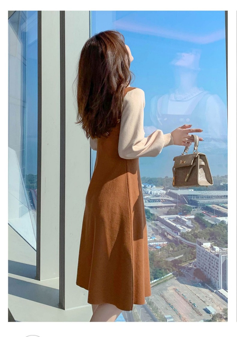 | 商品名称 | カカオ婉式の編み込みワンピス女2021秋冬新着商品のウエストが細く見えるスタイルの偽の2つの中の長目のセパタースカートのカーキ色M |