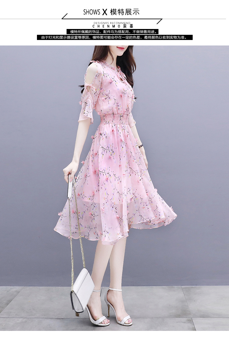 | 商品名称 | 妃莉杋 雪纺ワンピース女装2022年新着商品夏韩版时尚气质显瘦收腰半袖仙女スカート夏天小个子法式修身小碎花ロングスカート 粉色 M |